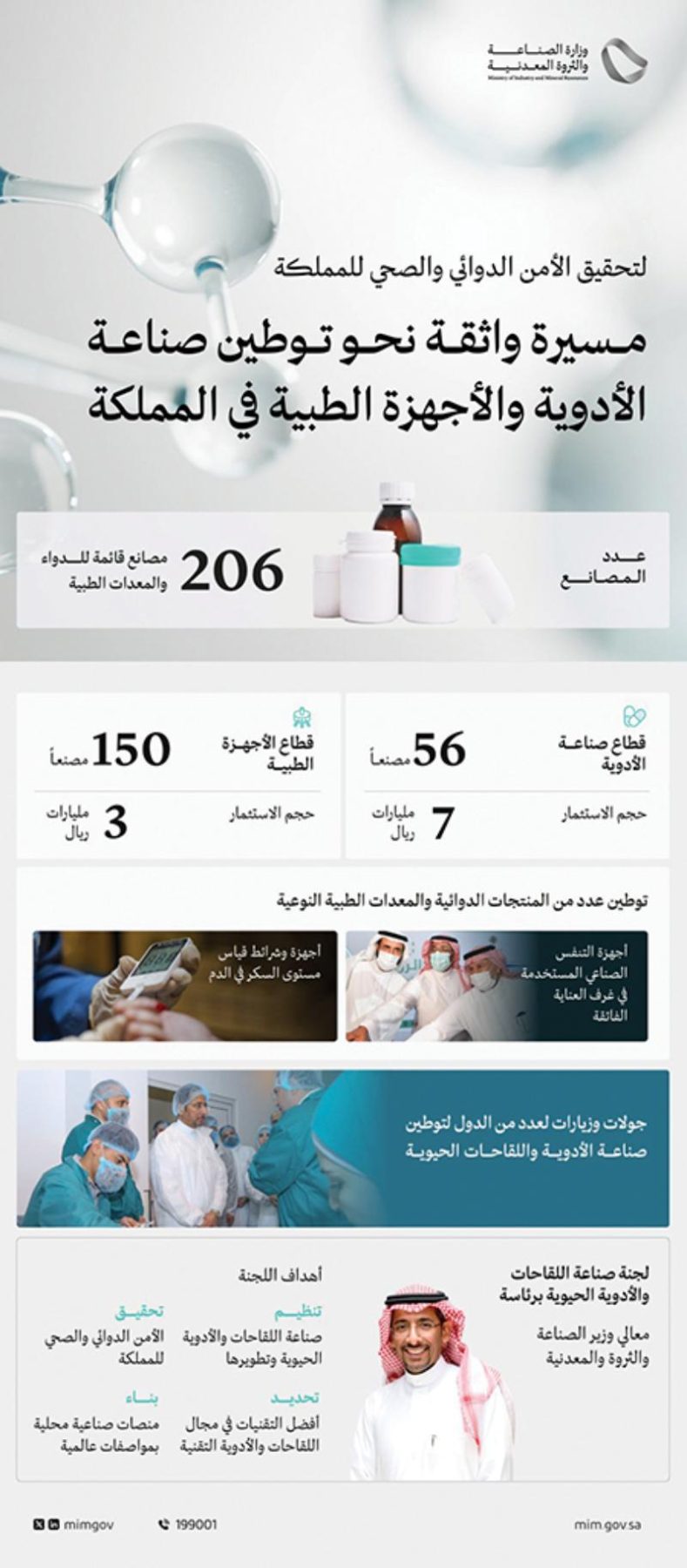سجل قطاع التصنيع نموًا يفوق %5 في بضعة أشهر من العام الجاري، كما شهد تسارعًا لافتًا بإصدار وزارة الصناعة 83 ترخيصًا صناعيًا جديدًا، وافتُتحت 58 مصنّعًا باستثمارات بلغت نحو 2.85 مليار ريال.