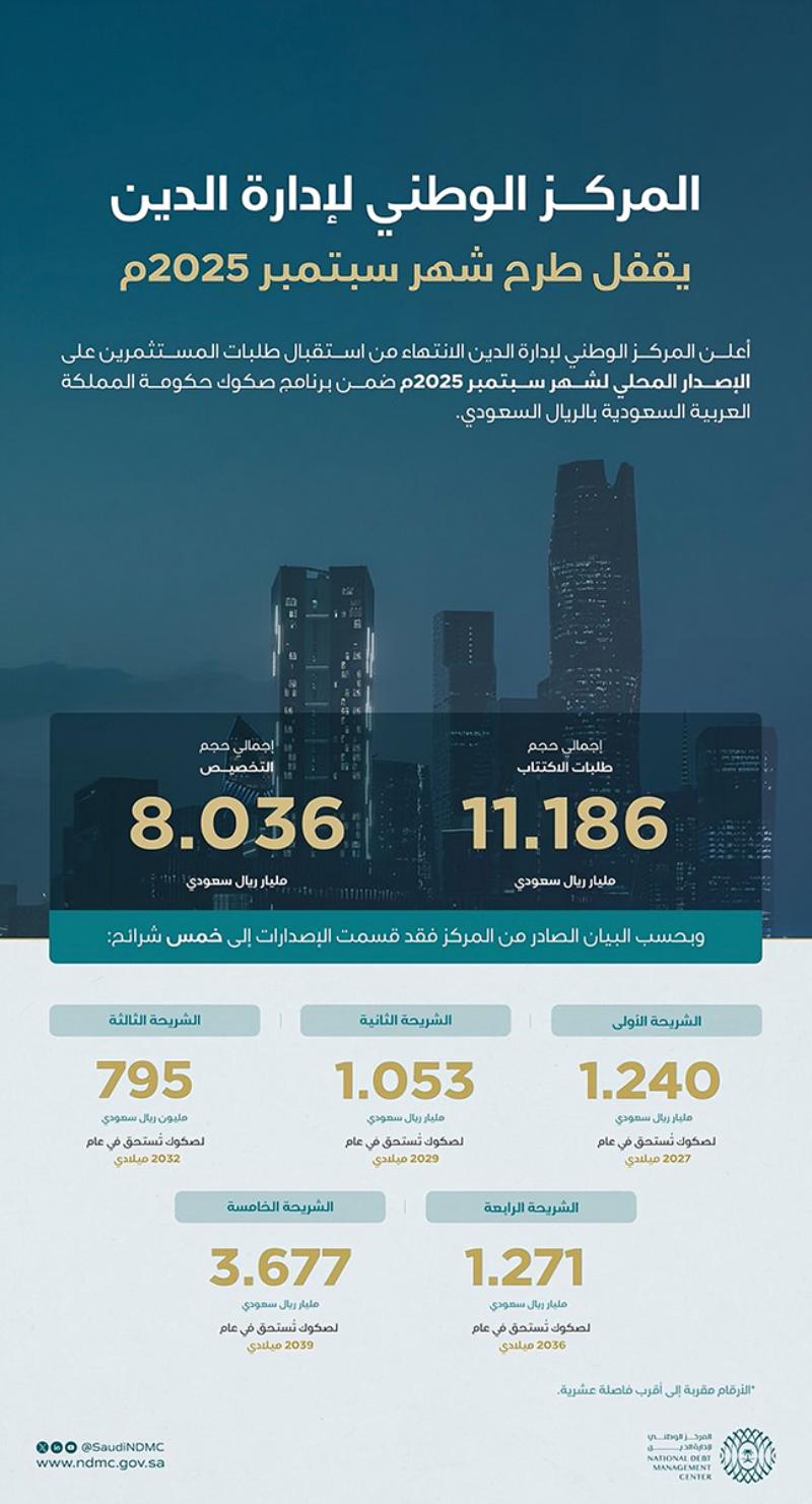 وقد استطاع المركز الوطني لإدارة الدين جمع 5.3 مليار ريال، من خلال إصدار صكوك مقومة بالعملة المحلية شهر أغسطس 2025م، بزيادة قدرها %5.8 مقارنةً بالشهر السابق، كما بلغت الإصدارات 2.35 مليار ريال و4.1 مليار ريال في يونيو ومايو 2025م، على التوالي، في خطوة تعكس الجهود المتواصلة لتعزيز سوق الدين وتنويع مصادر التمويل.