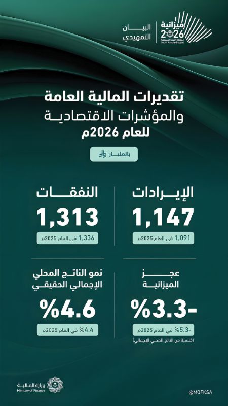 من هنا، تقوم ميزانية 2026م، على استكمال مسار التحول من اقتصاد يعتمد على النفط إلى اقتصاد متنوع، عبر ثلاثة محاور رئيسة: تحفيز الاستثمار الخاص، وتنمية الإيرادات غير النفطية، وتحويل الإنفاق الحكومي إلى محرك مستدام للنمو طويل الأجل.