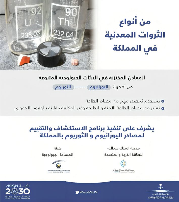 الاستثمار في “سلسلة قيمة الثوريوم” من التنقيب إلى التوليد النووي، يمكن أن يُشكّل أحد أعمدة الاقتصاد غير النفطي في المملكة.