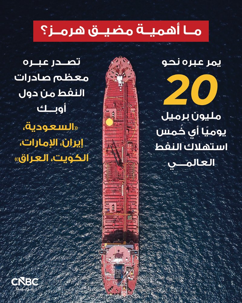 أدت الحرب الدائرة إلى تعطل مضيق هرمز، الذي لا يعد مجرد مجرى مائي فقط، بل الشريان الأكثر ازدحامًا وحيوية في العالم؛ إذ تمر عبره ما بين 135 إلى 150 سفينة يوميًا بمختلف أنواعها من وإلى موانئ الخليج، إلى تعطّل حوالي %20 من إمدادات النفط العالمية، فمن المعروف أن خُمس الاستهلاك العالمي من النفط يمر يوميًا عبر المضيق، فضلاً عن 5 ملايين برميل يوميًا من المشتقات والغاز المسال، وبالتالي فإنه من الطبيعي أن ينعكس أي اضطراب في حركة الملاحة عبر المضيق على أسعار النفط والغاز، وعلى سلاسل الإمداد والتضخم والنمو الاقتصادي.