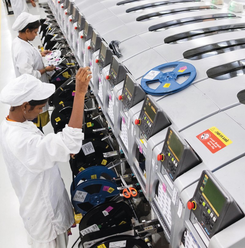 ومن الصين إلى الهند، وتحديدًا في المنطقة الاقتصادية بولاية “تاميل نادو”، لا صوت يعلو فوق صوت الأذرع الروبوتية وأدوات التنبيه الإلكترونية التي تعمل ليل نهار في مصنع شركة “بوليماتيك” للموصلات الإلكترونية، الذي يعد المصنع المُظلم الوحيد في البلاد، والذي تم إنشاؤه عام 2018م، ليضع الصناعة الهندية على أعتاب ثورة جديدة، حيث يشتمل على منظومة أتمتة فائقة ومبتكرة بشكل جذري، ويُنتج جيش من الآلات سلعًا بسرعة أكبر وبتكلفة زهيدة، دون المساس بالجودة.